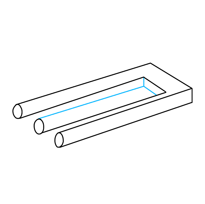 3. Từ đáy hình bầu dục, vẽ một đường thẳng dài song song với đường ban đầu. Sau đó, kết nối nó với góc bên phải của hình bằng một đường thẳng ngắn. Điều này phác thảo phía của prong gần nhất.