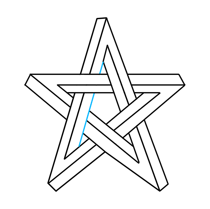 2. Từ dòng trước, mở rộng một đường thẳng ngắn trên đường chéo đối diện. Từ đó, kéo dài một đường thẳng dài lên trên. Từ đầu dòng này, vẽ một đường thẳng ngắn, sau đó một đường thẳng dài khác đi xuống, song song với đường dài trước đó. Điều này phác thảo một thanh khác của ngôi sao.